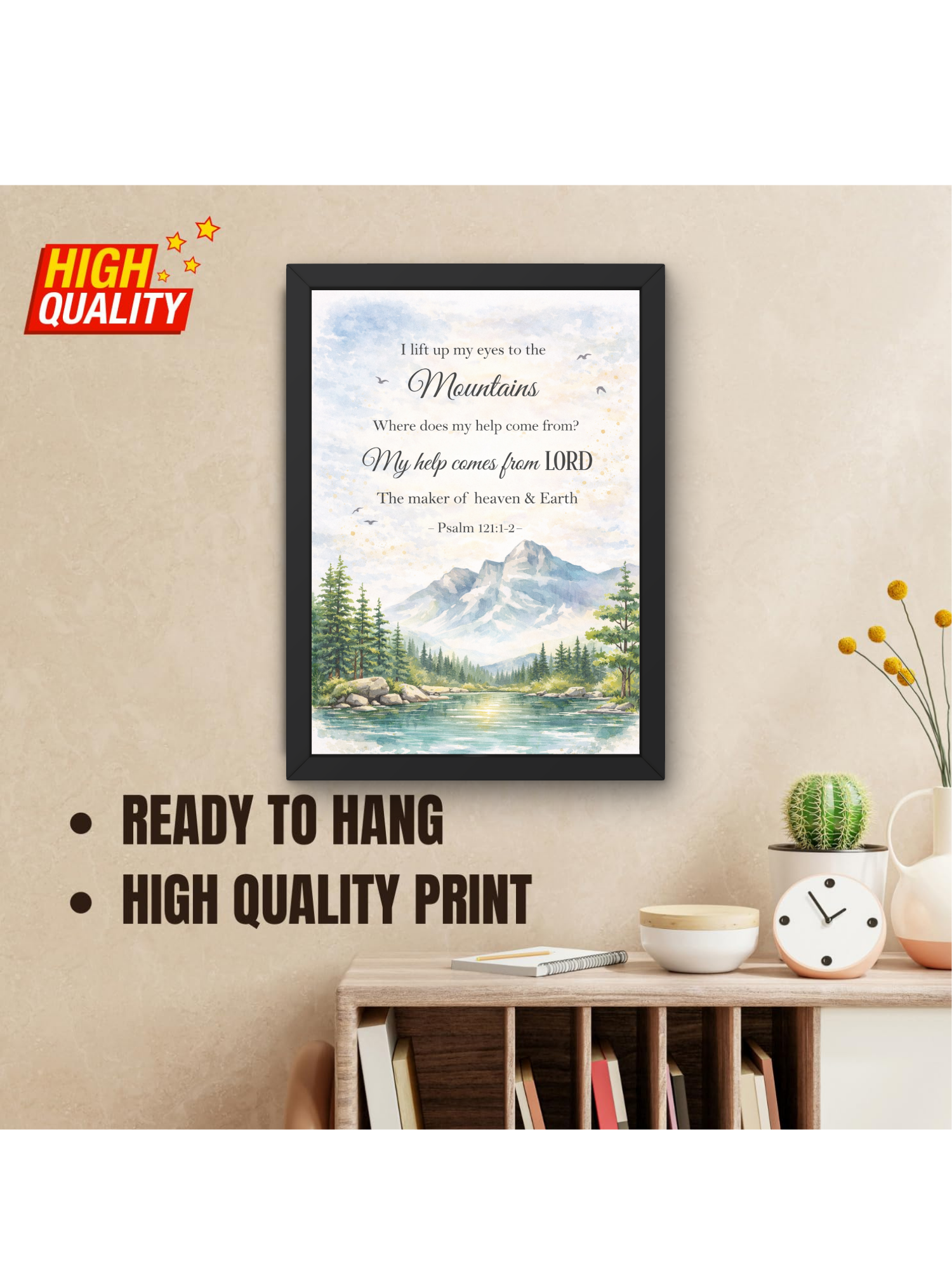 Psalm 121- 1-2 Bible Verse Wall Frame | Christian Living, Bedroom & Kids Room Decor A4 Size (13.6 x 10.2 inches)