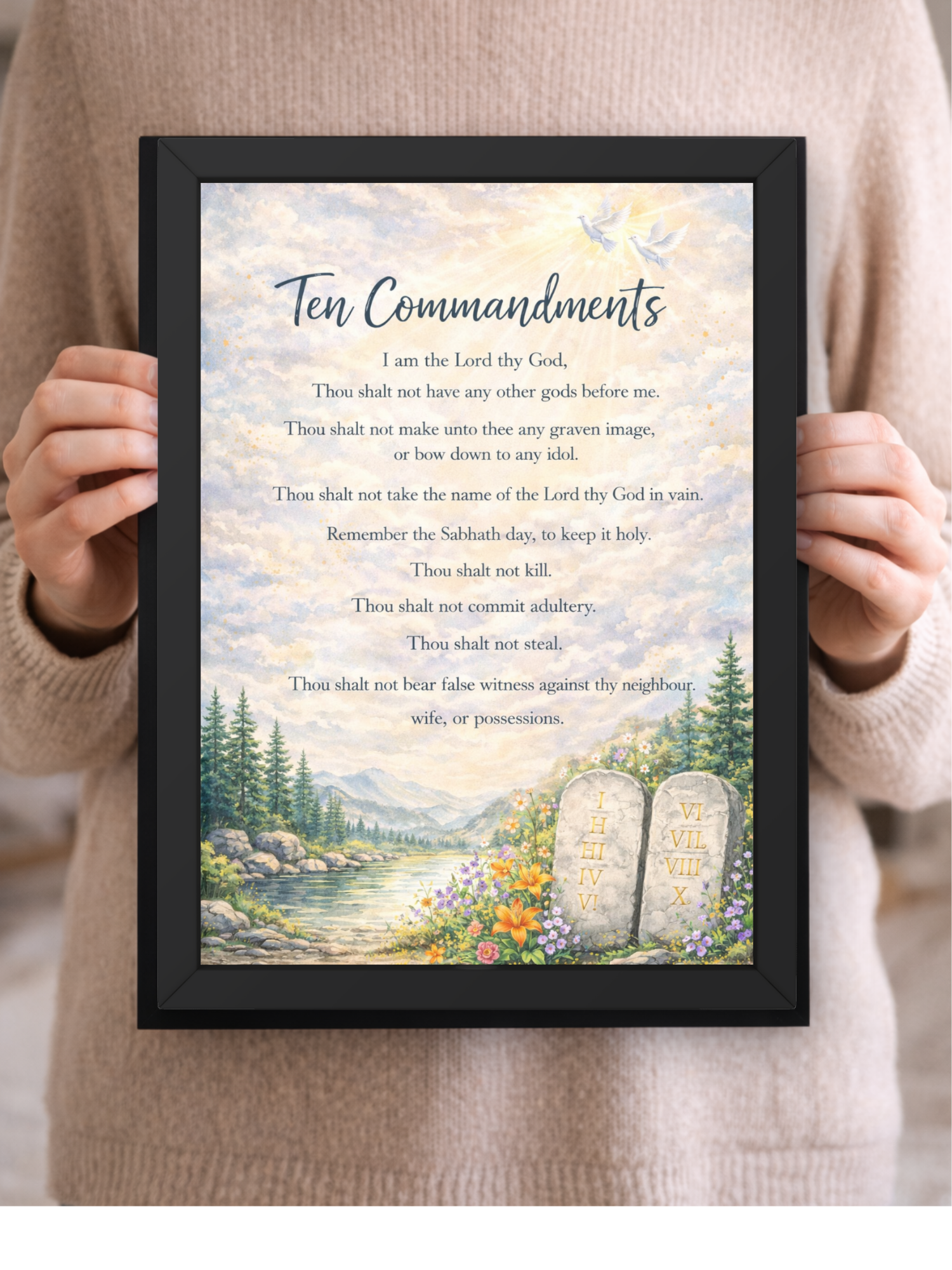 - Kid-Friendly Christian Artwork – Features the comforting message “Ten Commandments” with soft colors, making it ideal for children’s rooms and nurseries